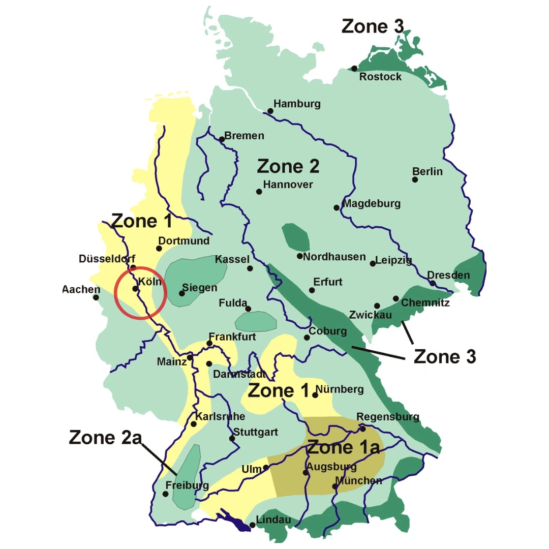 Bonn liegt in einem Bereich mit eher geringer bis mittlerer Schneelast, in der Regel in Schneelastzone 1. Diese Zuordnung bildet die Grundlage für die Berechnung der zulässigen Dachlast im Winter. Gleichzeitig können freie Rheinlagen oder Hanggrundstücke die Windbelastung deutlich erhöhen.